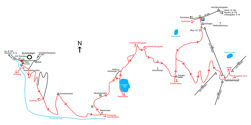 Alljährlich wird von einem Millionenpublikum im Rahmen der ORF-Sendung „9 Plätze – 9 Schätze“ Ende Oktober nach vorher durchgeführten Bundesländer-Ausscheidungen der „Schönste Platz Österreichs“ gewählt. Schon mehrfach hat Vorarlberg den Sieg errungen. Der nachfolgende Wandertipp führt in einer grandiosen Alpenlandschaft (Abb. 1) im Übergangsbereich des Bregenzerwaldes im Westen zu den Allgäuer Alpen im Norden und dem Lechquellengebirge im Süden vom kleinen Dorf Schröcken (1.269 m) vorbei am Körbersee (1.656 m), der im Jahr 2017 zum „Schönsten Platz Österreichs“ gekürt wurde, und dem Salobersattel (1.792 m) auf den Saloberkopf (2.043 m, Abb. 2). Vom Skiberg der im Norden des Arlberggebietes liegenden Gemeinde Warth geht es dann abwärts zum Hochtannbergpass (1.676 m), von dem wir mit dem Linienbus zum Ausgangspunkt zurückkehren.